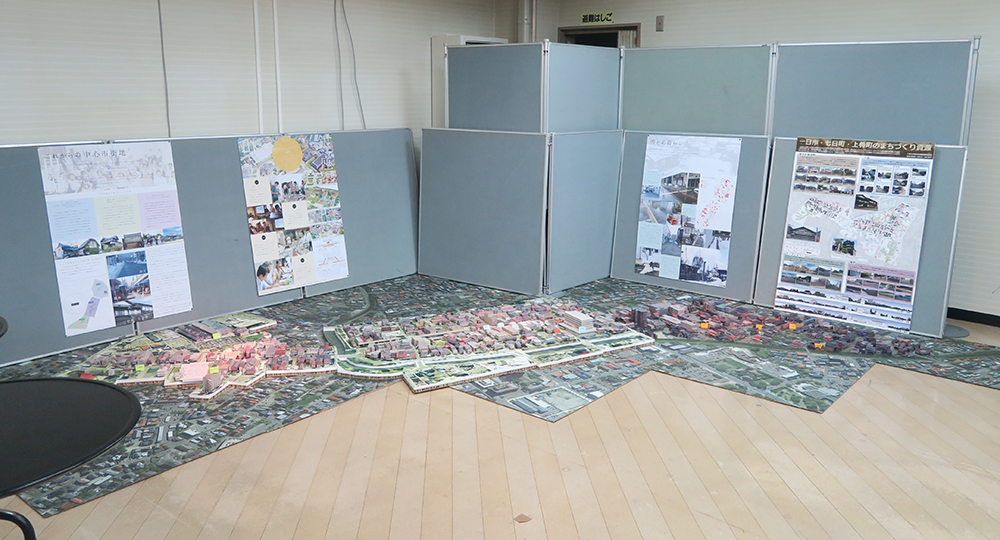 鶴岡銀座 セントル プレオープンで「一日市・七日町・上肴町のまちづくり資源」と題したパネルを展示しました。